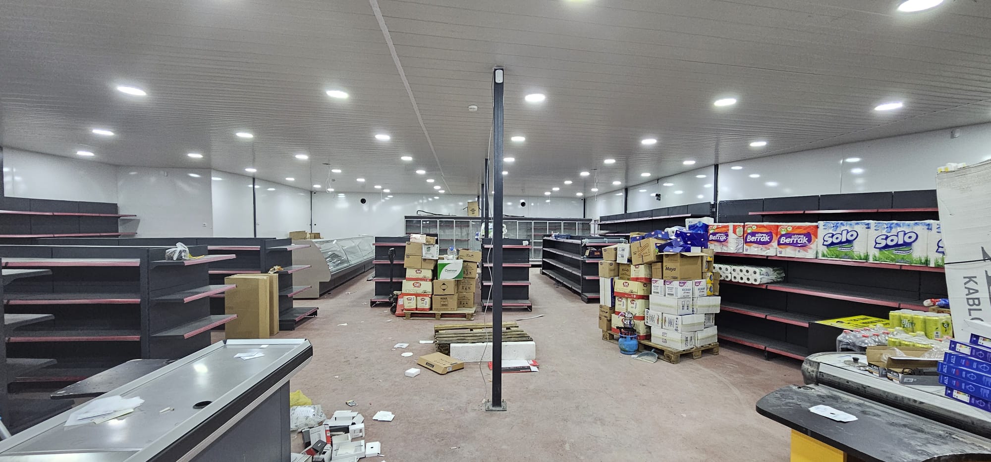 Malatya' nın Akçadağ ilçesinde gerçekleştirdiğimiz marketin iç tasarımı, müşteri isteği doğrultusunda yapılmıştır. Duvarlar, sandviç panel ile yalıtılmış ve 18 mm beyaz cilalı MDF ile kaplanmıştır. Tavan kısmı ise İzocam yalıtım ve lambriden oluşmaktadır.